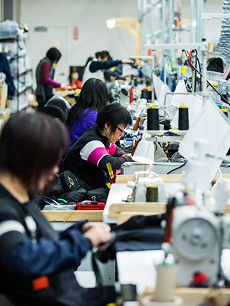 아크테릭스의 제조업 기술은 캐나다에 그 뿌리를 두고 있지만, 우리의 생산 체계는 그야말로 세계적이라 할 수 있습니다. 아크테릭스의 기능성 제품을 생산하기 위해서는 캐나다만으로는 역부족인데, 캐나다의 기능성 의류 제작자들의 숫자가 우리의 제조 크기에 훨씬 못 미치기 때문입니다.